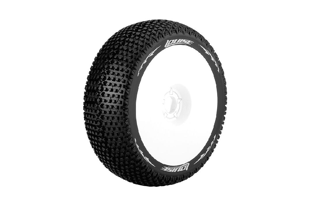 | Louise R/C B-Turbo 1/8 Buggy (Soft Compound), mounted on white wheels (2). Includes: